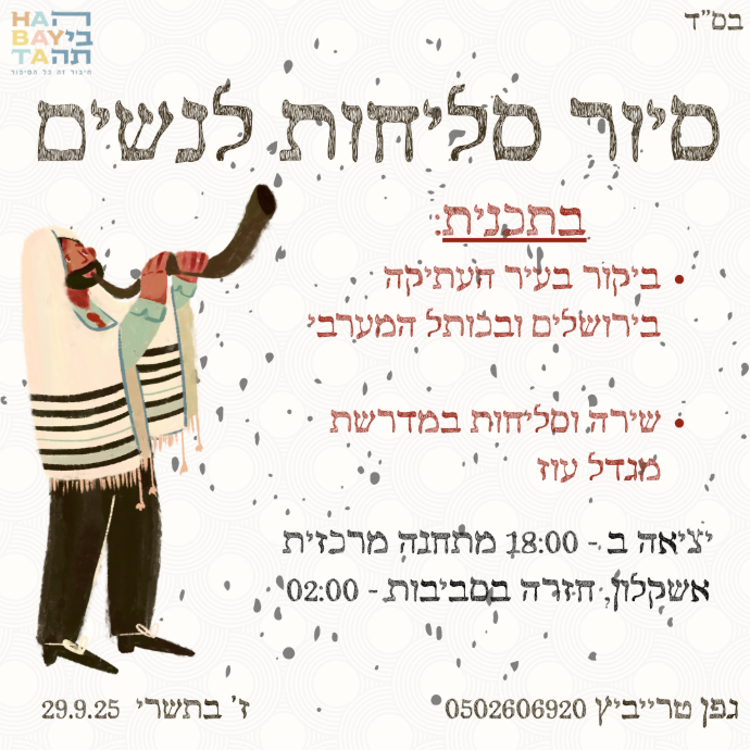 סיור סובב חומות הר הבית וסליחות נשיות במדרשת מגדל עוז